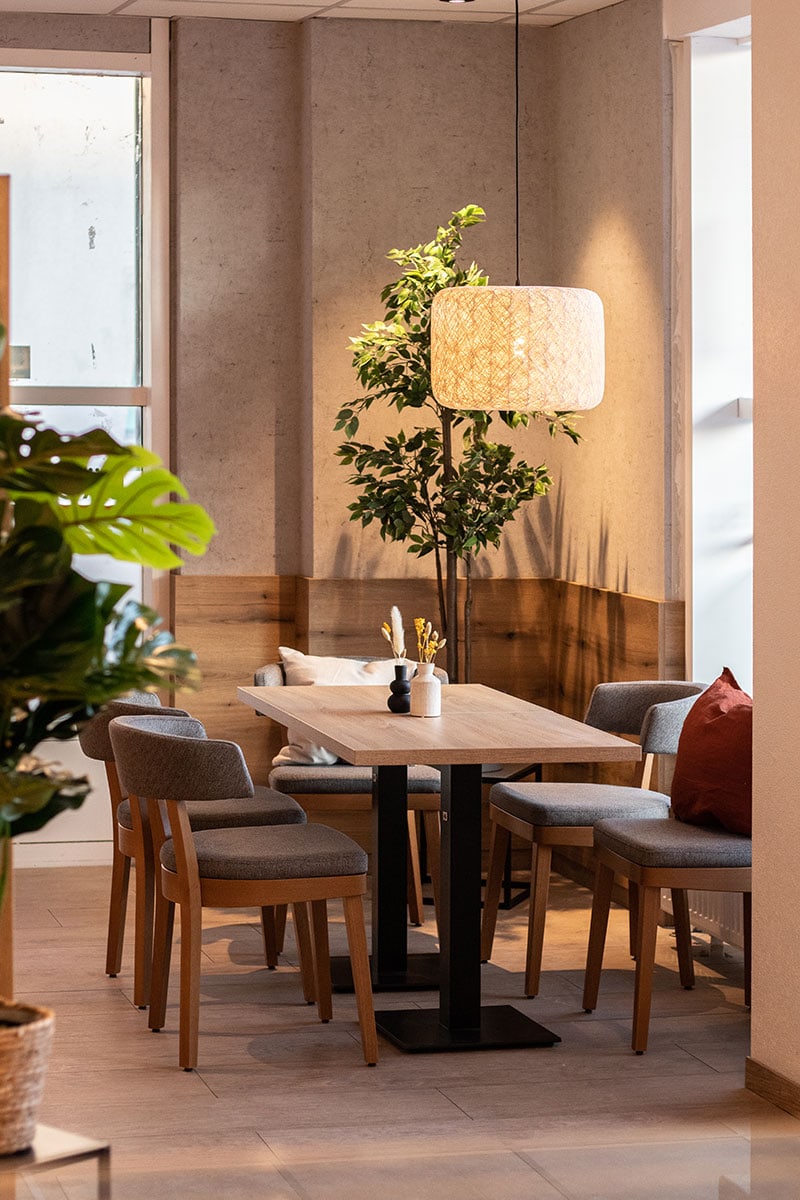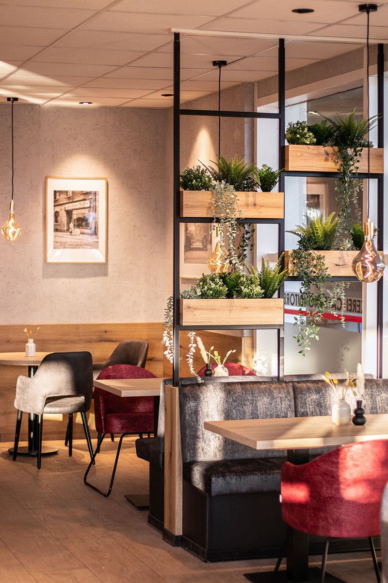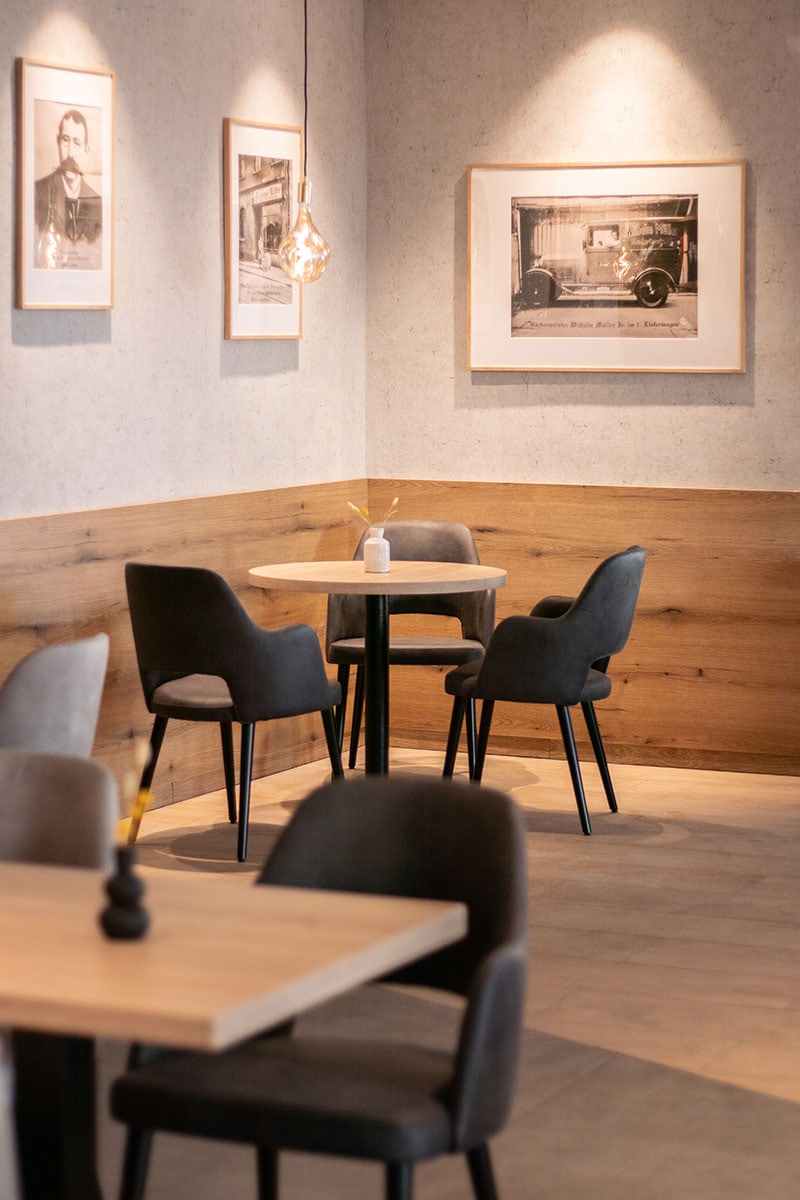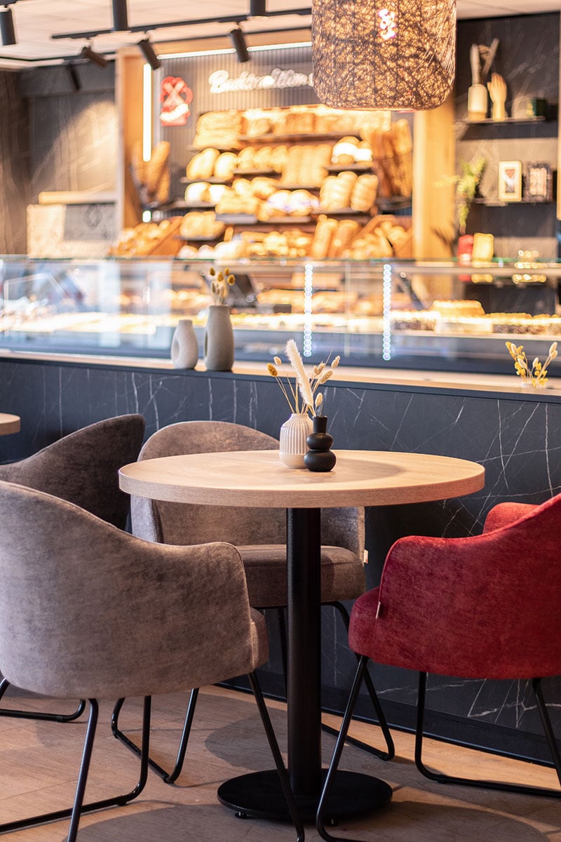 Ausschlaggebend für die Erteilung des Auftrages waren sicher die professionelle Kundenberatung, eine Betriebsbesichtigung und die 3D-Visualisierung des Gesamtkonzeptes unter Einbeziehung der vorgestellten neuen Brotwand. Auf einer Gesamtfläche von ca. 200 qm werden nun frische Spezialitäten aus der Backstube und Konditorei, herzhafte Snacks, Kaffeespezialitäten und vieles mehr in einem einzigartigen Rahmen präsentiert und serviert. Die verschiedenen Sitzbereiche wurden so angelegt, das sich jung und alt hier gleichermaßen wohlfühlen. Mit der neuen konzeptionellen Ausrichtung wurden auch die Arbeitswege optimiert und Laufwege von Mitarbeitern reduziert. Das spart Zeit und am Ende Geld. Die besondere Atmosphäre wird durch den perfekten Einklang der Farben und wertigen Materialien mit der inszenierten LED-Lichtstimmung erreicht. Resümee: den Kunden gefällt das einladende Ambiente, dem Personal funktionierende Arbeitsabläufe und der Inhaberfamilie das Feedback der Kunden.