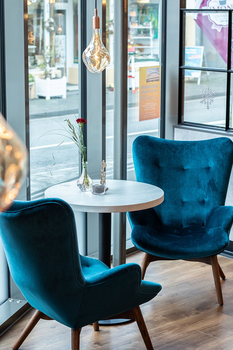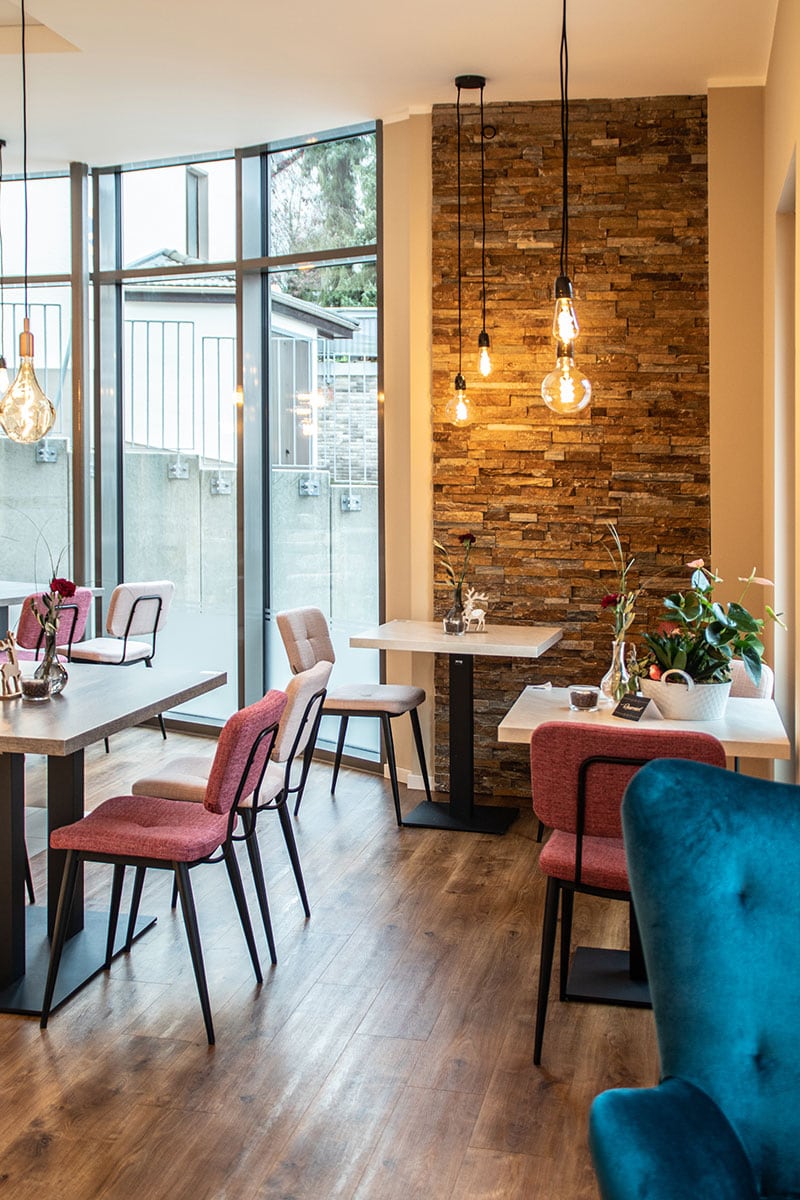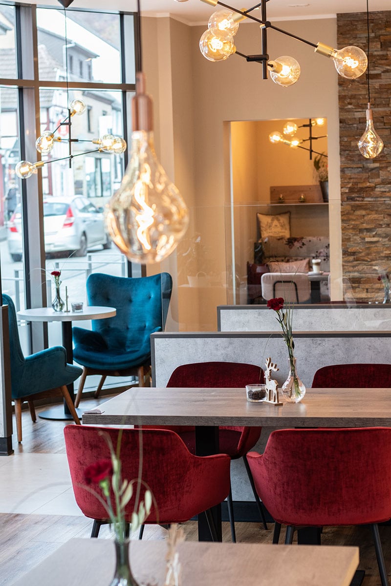 Besucht man den Rheinland-Pfälzischen Luftkurort Waldbreitbach und flaniert über die Neuwieder Straße, wird man sicher an der bogenförmig herausstehenden Glasfassade innehalten. Die Glasfassade erlaubt den Passanten einen Einblick in eine zauberhafte Welt der feinen Konditorei. Das hier neu entstandene Café ist eine Hommage an das Konditorenhandwerk – beginnend bei den duftenden Backwaren bis hin zu der einladenden Einrichtung. Konditorenmeisterin Simone Palloshi, Inhaberin von Simones Conditorei, entschied sich bei der Einrichtung ihres Cafés auf die Erfahrung und das Knowhow der Walterscheid-Projektschmiede zu bauen.