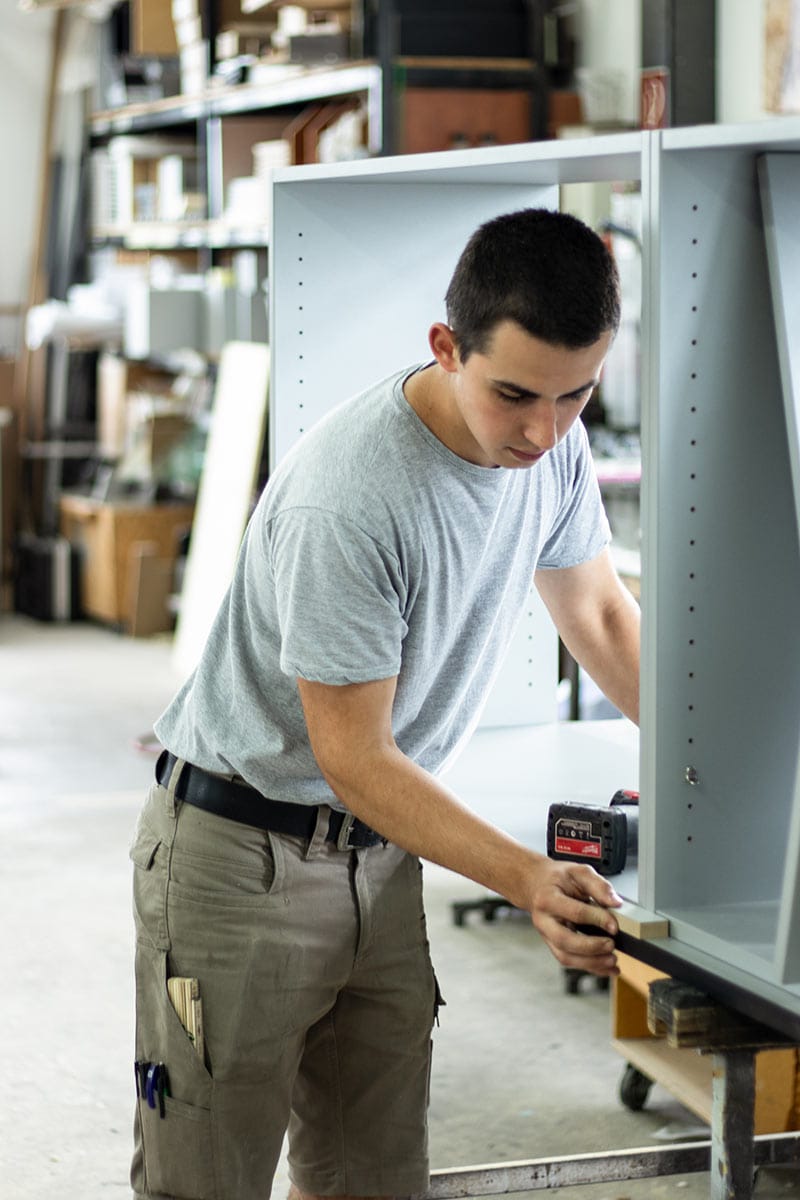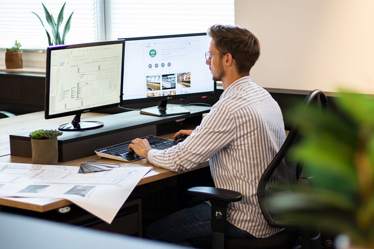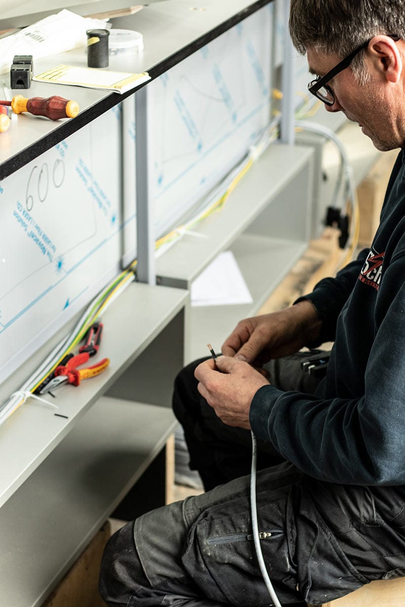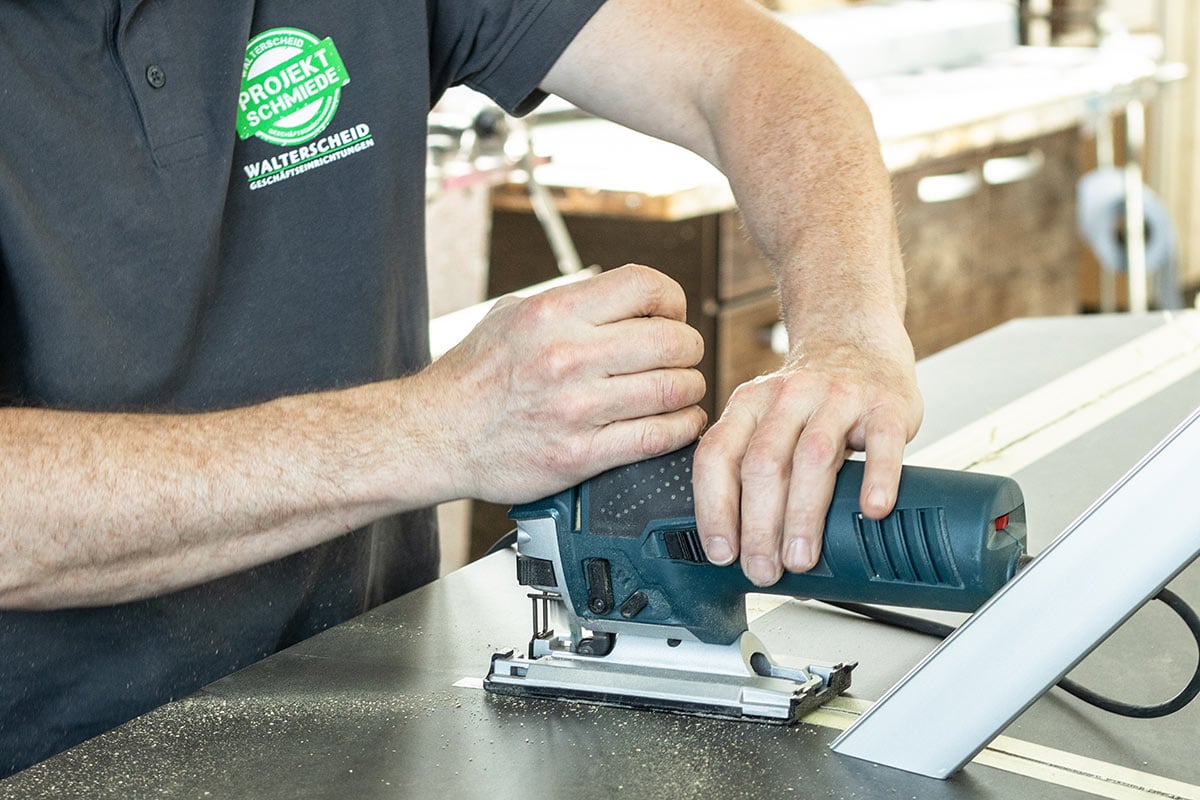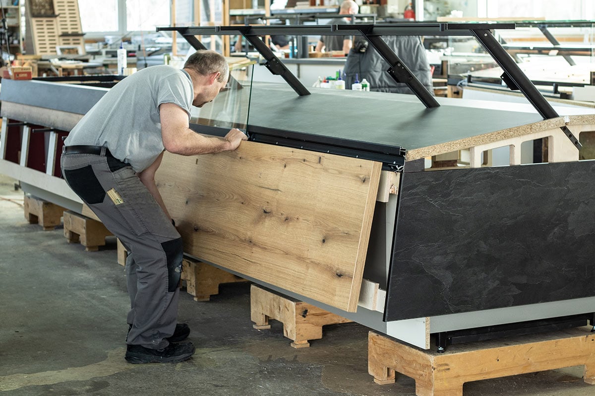 In der Projektschmiede des Unternehmens treffen handwerkliche Präzisionsarbeit und modernste Technik aufeinander. Die einzelnen Einrichtungselemente werden direkt vor Ort in der eigenen Werkstatt gefertigt. So lässt sich unkompliziert und unbürokratisch auf die individuellen Kundenwünsche eingehen. Ein weiterer Vorteil der im „Haus – Produktion“ liegt darin, dass sich die gesamte Auftragsabwicklung einfacher steuern und überwachen lässt. Terminschwierigkeiten können so gar nicht erst entstehen.