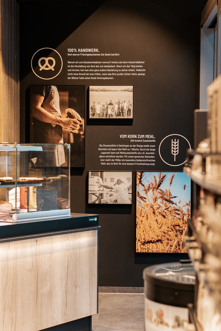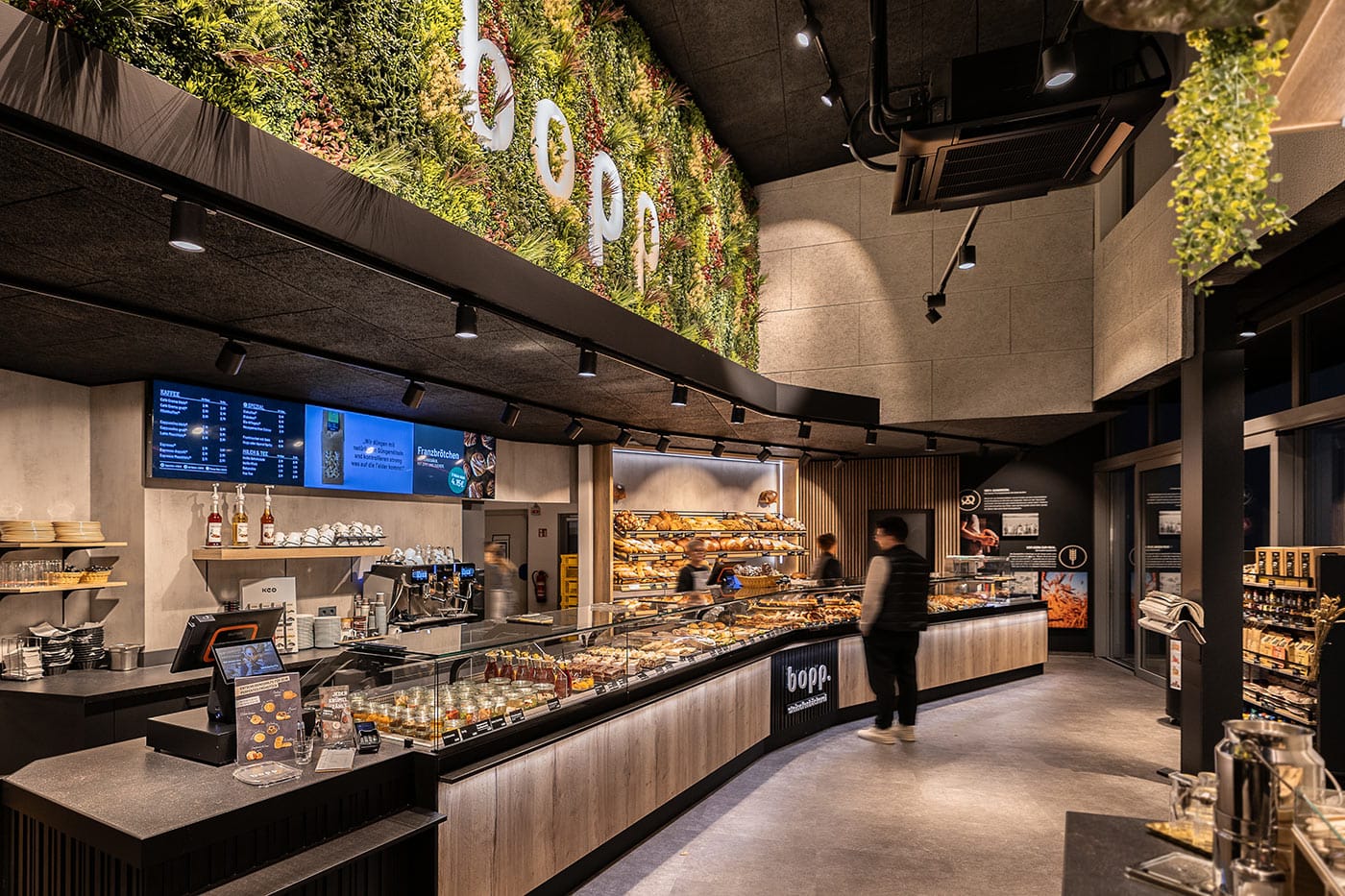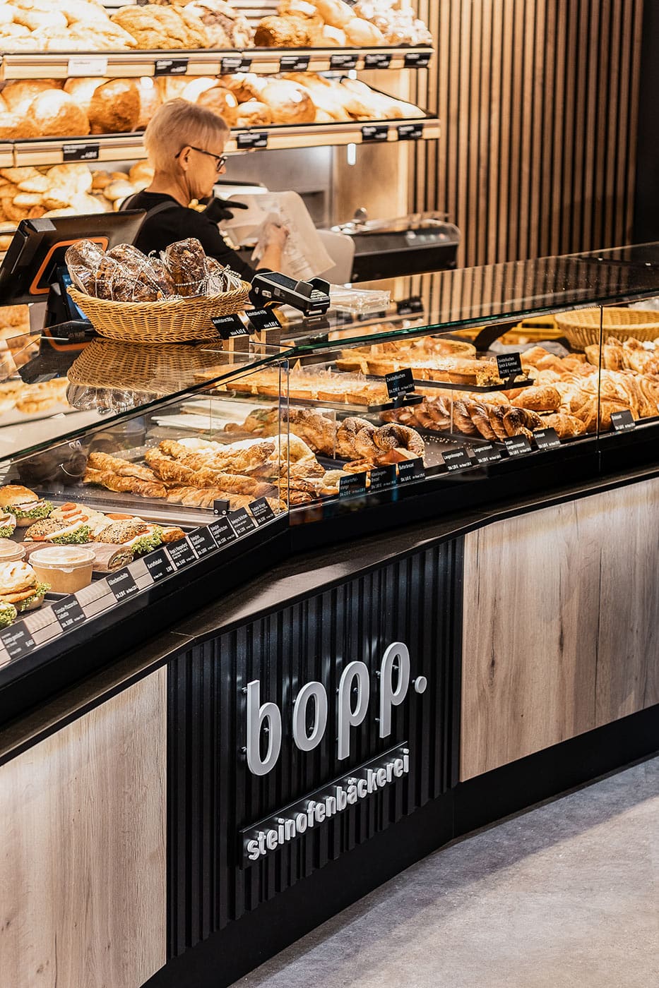 Erstmals wandten sich die Brüder Thorsten und Markus Bopp für die Neugestaltung dieser Filiale an die Walterscheid – Projektschmiede. Die Aufgabenstellung lautete: „Die Bestandsfläche der Filiale unter Berücksichtigung der baulichen Gegebenheiten zu erweitern und ein modernes Einrichtungskonzept zu realisieren.“ Die Thekenanlage hatte bei allen Überlegungen oberste Priorität, da sie für das wechselnde Tagesangebot alle Bereiche von Kühlung, über Heißtheke, Belegstation, Bevorratung und sogar einem Tablett-Laufband alles beinhalten sollte. Schon die ersten visualisierten Entwürfe entsprachen den Vorstellungen der Familie Bopp. Die außergewöhnliche Gestaltung dieser Location signalisiert dem Kunden: „Hier wird dir absolute Backwaren-Frische, eine große Angebotsvielfalt in meisterlicher Qualität zu jeder Tageszeit geboten.“ Wertige Materialien und ein perfekt abgestimmtes architektonisches Konzept bringen ein bisschen Luxus in den Alltag der Kunden und Gäste. Der abgewinkelte Thekenverlauf leitet die Kunden an Brot- und Backwaren, Snacks, Heißtheke und Kaffeeservice vorbei zum Verweilen im einladenden Sitzbereich. Zu jeder Tageszeit werden hier kulinarische Genüsse offeriert: morgens Frühstück, mittags herzhafte Snacks und wechselnde Tagesgerichte und zum Nachmittag Kaffee, Kuchen und Süßgebäck. Auch die neugestaltete Außenfassade, das einladende Interieur mit begrünter Deckenschürze und beleuchtetem LED-Schriftzug des Unternehmens schaffen eine wohlige Atmosphäre. Funktionierende Arbeitsabläufe und kürzere Laufwege sorgen für das Wohlbefinden der Mitarbeiter, das spart Zeit und letztendlich bares Geld! Der Erfolg der Bäckerei Bopp in Deggingen beweist: Das Konzept trifft den Zeitgeist und „funktioniert“ – auf hohem Niveau und mit einem Angebot für jeden Geschmack. Wir bedanken uns bei Familie Bopp für Ihr Vertrauen und freuen uns auf das nächste gemeinsame Projekt.