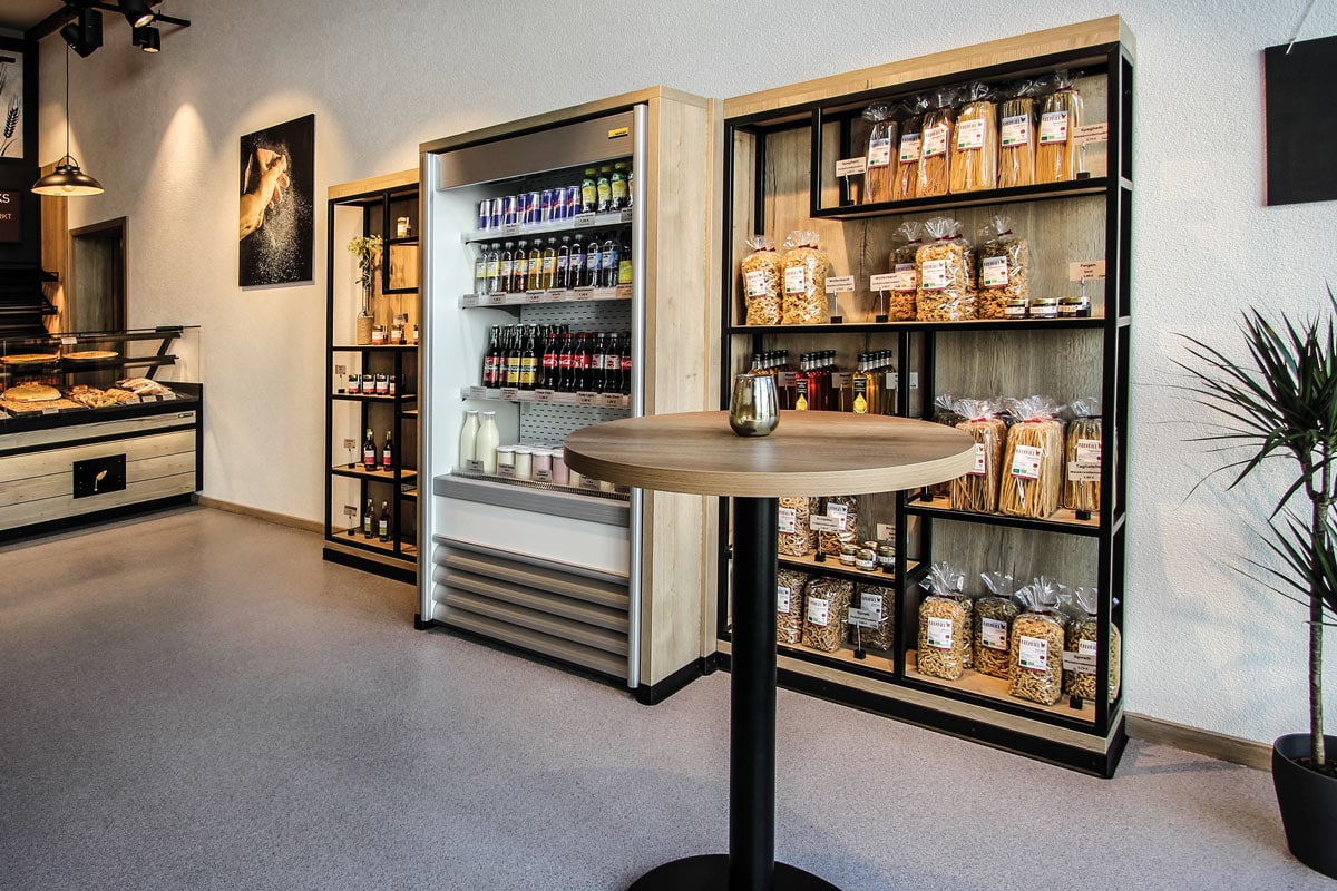 Farben und Materialien wie Stahl, Holz und Sandstein spiegeln sich nach aufwendiger Restauration auch im inneren der etwa 36 qm großen Ladenfläche wider und prägen den Industrial – Style. Für das neu konzipierte Produktangebot hat die Walterscheid-Projektschmiede unter Leitung von Kundenberater Philipp Merdon eine Einrichtung realisiert, die nicht nur zum Verweilen in der neu geschaffenen Sitzecke mit Chaiselongue und Loungesessel einlädt, sondern im Verkaufsraum durch eine perfekt integrierte Thekenanlage eine ansprechende Warenpräsentation ermöglicht. Frischluftfans können auf der barrierefreien Terrasse ihren Kaffee, Kuchen oder Snack genießen.