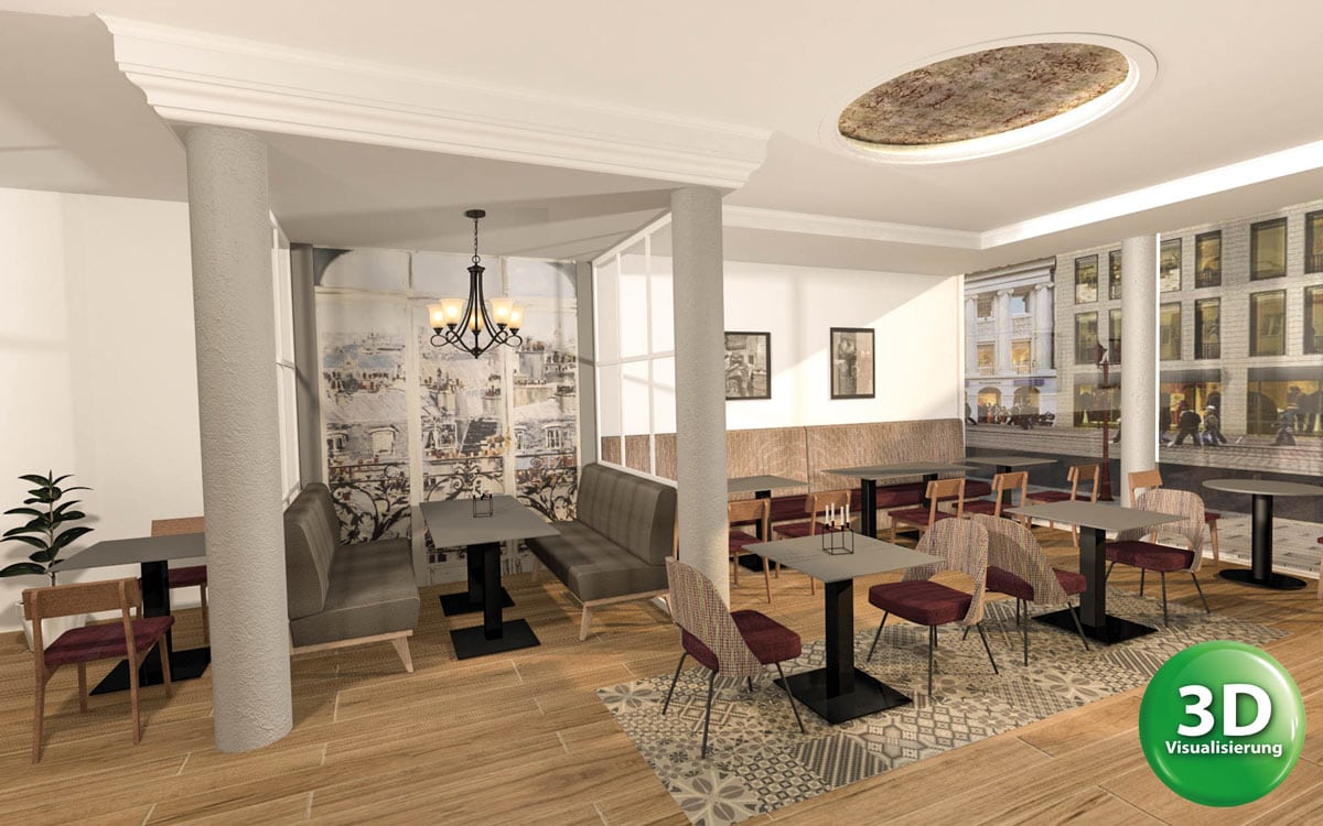 Die Traditionsbäckerei Mainz-Weitz in Jülich kann auf eine 150-jährige Geschichte zurückblicken. In der Backstube des Familienunternehmens werden seit jeher Backwaren von Hand angerührt, geknetet und in Form gebracht. Mit viel Fingerspitzengefühl und Liebe zum Produkt entstehen hier die allseits beliebten und geschätzten Backwaren. Die Konditoreiwaren werden zu Genusskunstwerken fürs Auge und den Gaumen gestaltet. Anlässlich des 150-jährigen Bestehens beschlossen die beiden Familien, das Jülicher Café in der Marktstraße zu modernisieren und zukunftsfähig zu gestalten. Für diese Neuausrichtung entschied man sich für die Walterscheid – Projektschmiede und Projektplaner Günter Quadflieg. In relativ kurzer Zeit entstand hier auf ca. 140 qm eine Lokation mit gesamtheitlicher Konzeption und Einrichtung.