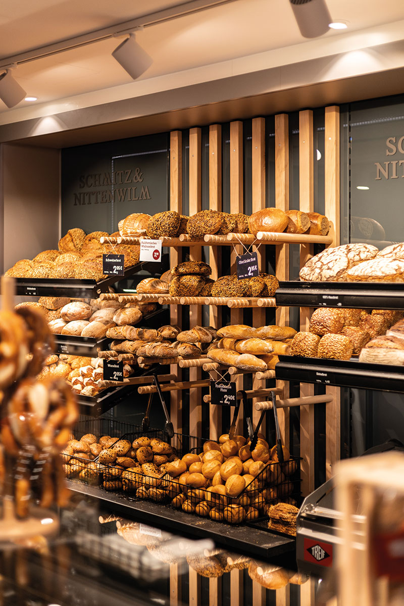 Unter der gestalterischen Leitung des Innenarchitekten Herbert Reif (Reif-Einrichtungen) und in enger Zusammenarbeit mit der Familie Schmitz realisierte Walterscheid Geschäftseinrichtungen den neuen Flagshipstore der Bäckerei Schmitz & Nittenwilm am Hermeskeiler Platz in Köln. Entstanden ist ein ganzheitliches Raum- und Einrichtungskonzept für einen der wichtigsten Standorte des traditionsreichen Kölner Familienbetriebs.