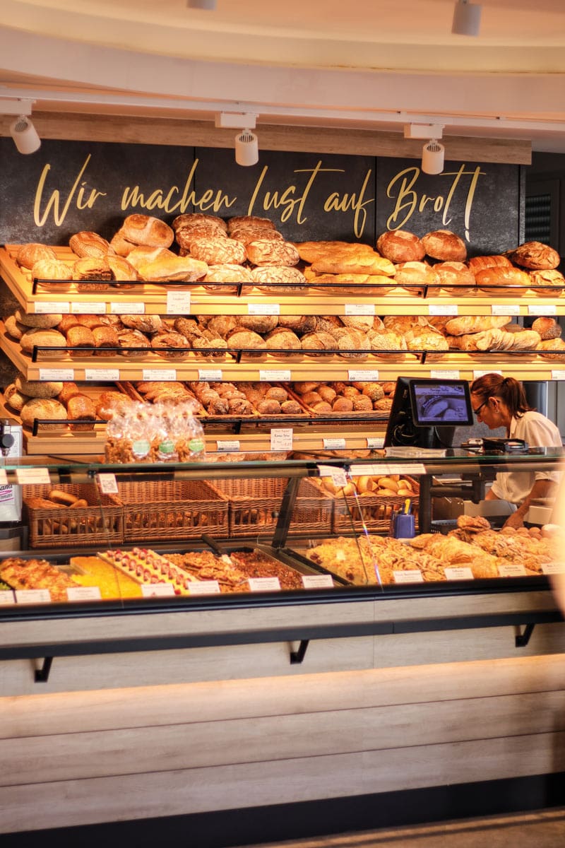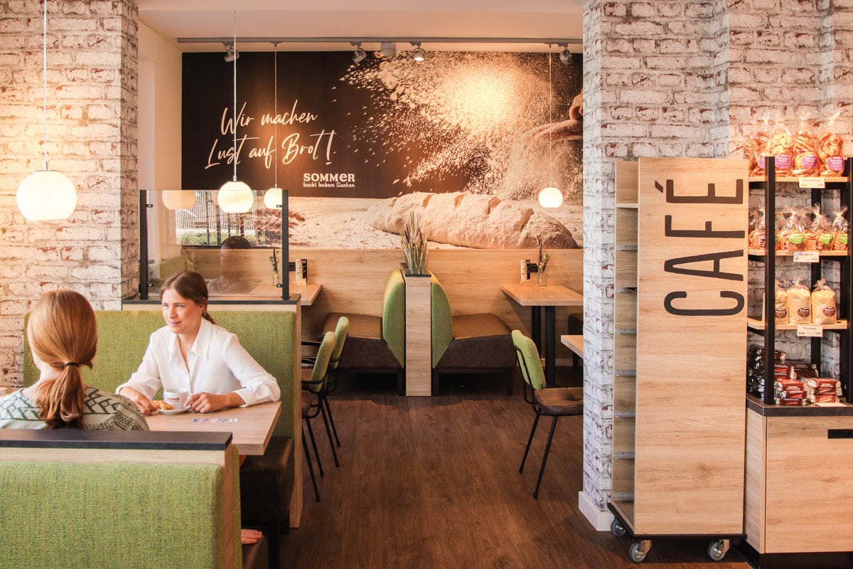 Unter diesem Slogan fokussiert die Bäckerei Sommer nach umfangreichen Umbauarbeiten in den Räumlichkeiten einer ehemaligen Apotheke ihr Kerngeschäft Brot. Die Viktoriastraße ist nun die 15. Filiale des von Steffen und Thomas Sommer geführten Familienbetriebes in Krefeld und deren Vororten. Die Walterscheid – Projektschmiede unter Federführung von Kundenberater Klaus Weiermann wurde beauftragt, ein zukunftsträchtiges Einrichtungskonzept zu realisieren, welches das Vollsortiment, insbesondere die Brotvielfalt, Brötchen und die Kuchenauswahl – ausschließlich selbst gebacken – perfekt präsentiert. Das Ergebnis ist ein einladend helles Erscheinungsbild, kontrastiert mit dunklen Materialien, um den Hauptdarsteller, die Backwaren hervorzuheben. Auf 23 gemütlichen Sitzgelegenheiten können die Gäste, wie auch in den anderen Filialen, einen bäckertypischen Snack mit Brot, Brötchen und Eierspeisen oder auch leckere Konditoreiartikel bei einem Kaffee- oder Kaltgetränk genießen. Dezente Farbakzente in Form grüner Sitzpolster laden zum Verweilen ein. Einen optimalen Einblick auf das appetitlich präsentierte Backwarensortiment ermöglicht die stark angeschrägte Thekenfrontscheibe wie auch das 7 mtr. messende Brotregal. Ein großformatiges Leuchtbild, stimmungsvolle Fototapete mit dem Slogan sowie eine liebevoll arrangierte Dekoration schaffen ein Ambiente zum Wohlfühlen.