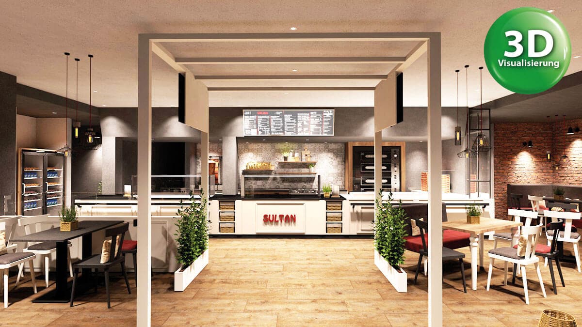 In unmittelbarer Nachbarschaft des Siegburger Bahnhofs verwöhnt seit Jahren das SULTAN Siegburger, Reisende und Geschäftsleute, ob Jung oder Alt, mit Köstlichkeiten der türkischen Küche. Da die Einrichtung des Lokals nicht mehr zeitgemäß war, entschieden sich die Inhaber Topal für eine Kernsanierung und ein zukunftsträchtiges Einrichtungskonzept der Walterscheid Projektschmiede unter Leitung von Dipl.-Ing. Frank Tenten. Der nach Sanierung vergrößerte, lichtdurchflutete Gastraum sowie auch der Produktionsbereich und die Thekenanlage erhielten nach akribischer Detailplanung ein komplett neues Fitting. Hochwertige, natürliche und edle Materialien an Wänden, Boden und den Exponaten sowie LED-Lichttechnik und neuestes Equipment in der Produktion verschmelzen zu einem harmonischen Gesamtwerk.