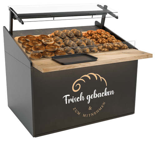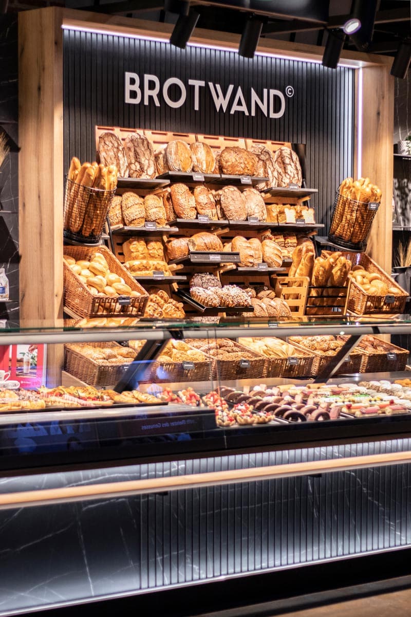 • Die beliebte Brotwand als einzigartige Warenpräsentation mit nahezu senkrechter Auslagefläche und neuen Einhängemodulen wie z.B. dem großzügigen Brötchentrog